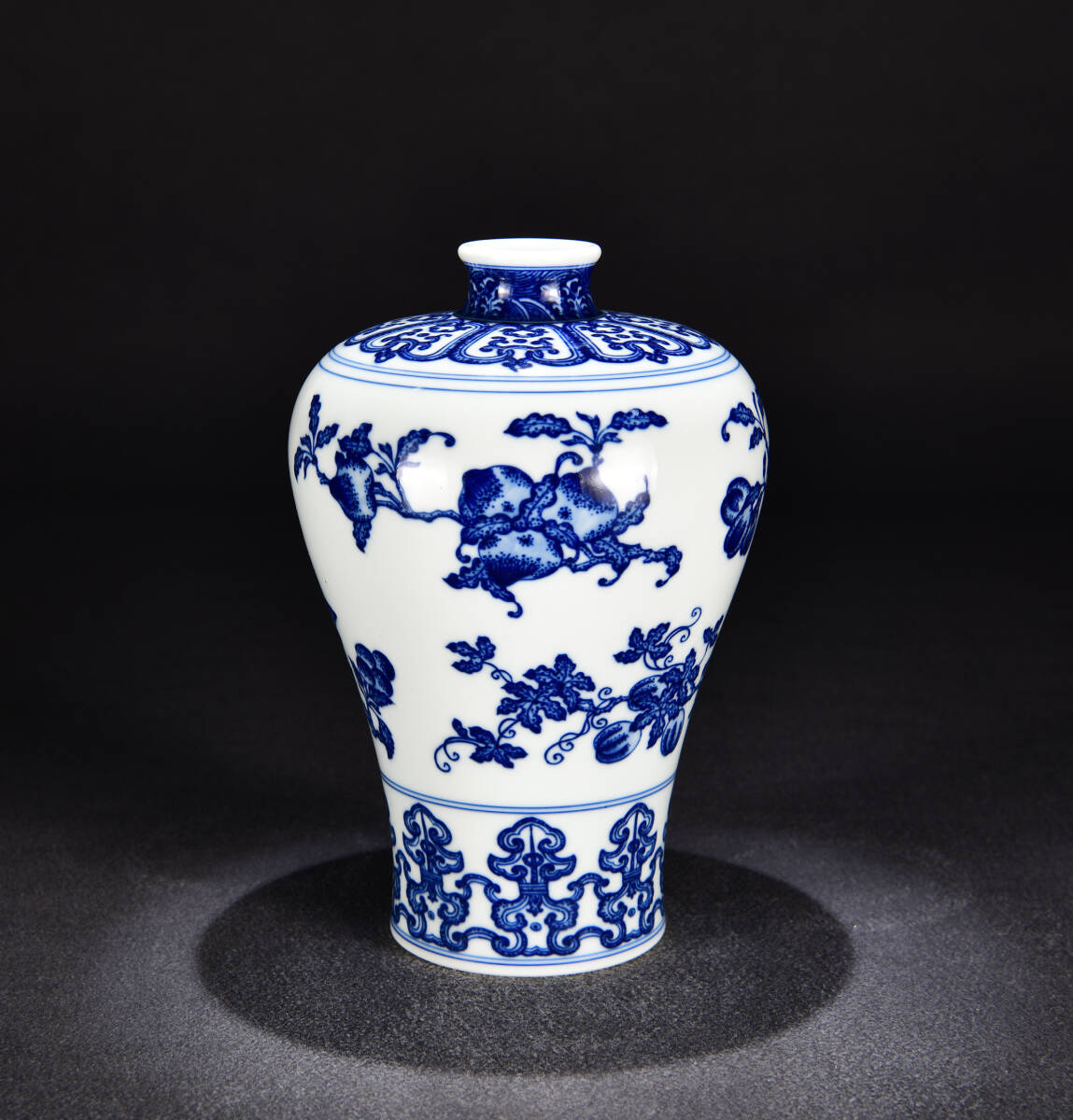 - 旧 清代 乾隆年制 青花折枝瓜果紋梅瓶 唐磁 古陶磁器 陶芸 中国古美術 古賞物 古置物 唐物 K711