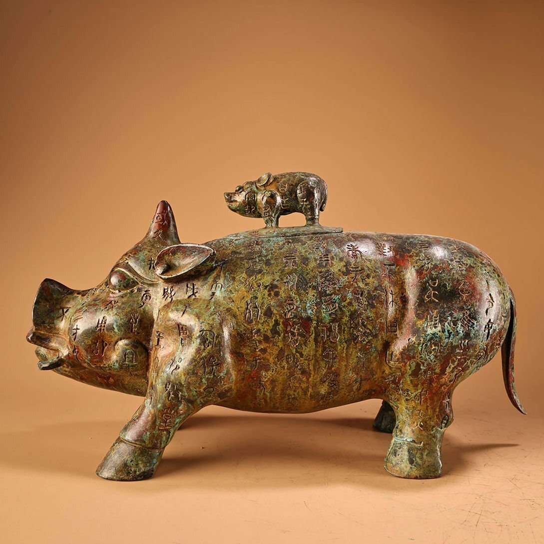 - ▼渡鶴羽▼H71566西周 青銅器 青銅猪尊 細密細工★古置物★古賞物★古擺件★蒐集家放出★唐物