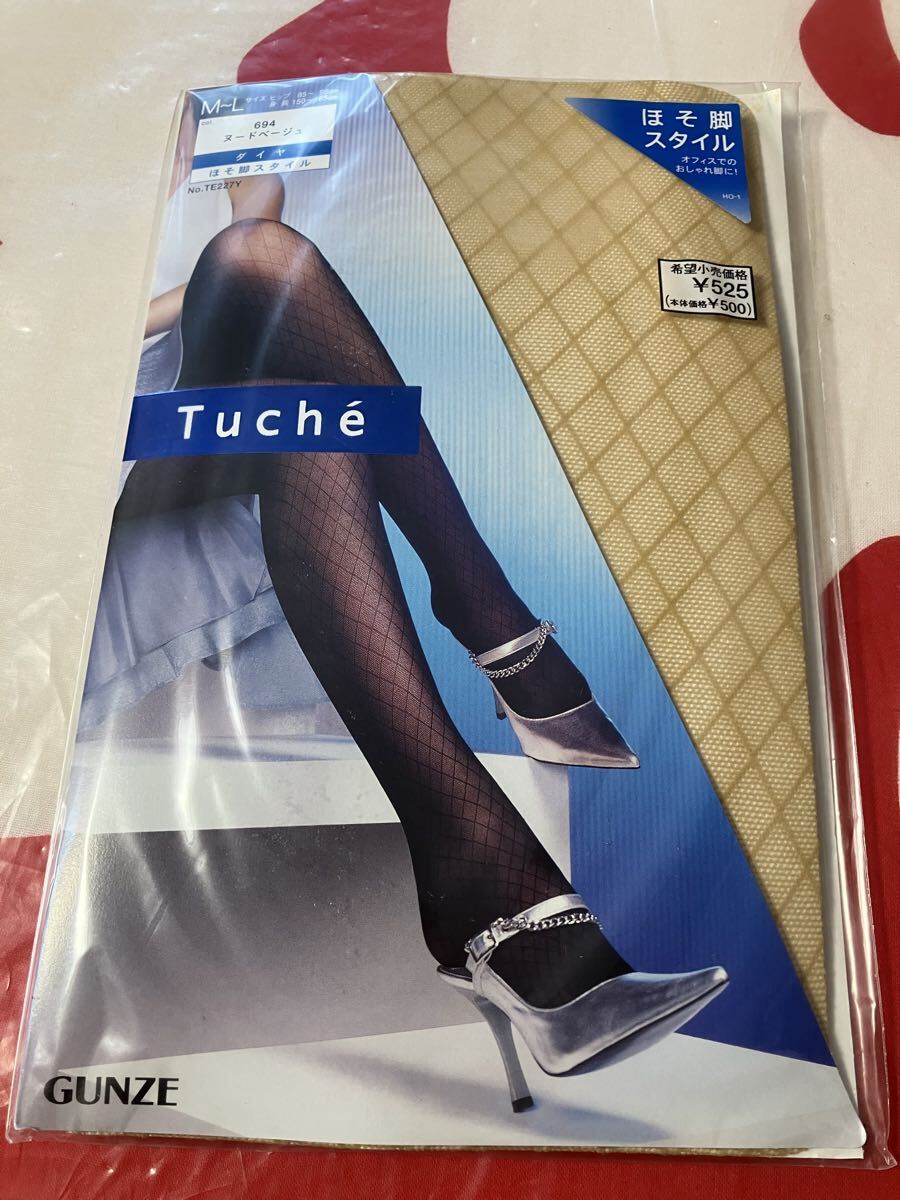 - gunze tuche ダイヤ ヌードベージュ パンティストッキング グンゼ パンスト 柄 デザイン panty stocking トゥシェ 模様 ほそ脚 M-L 肌色