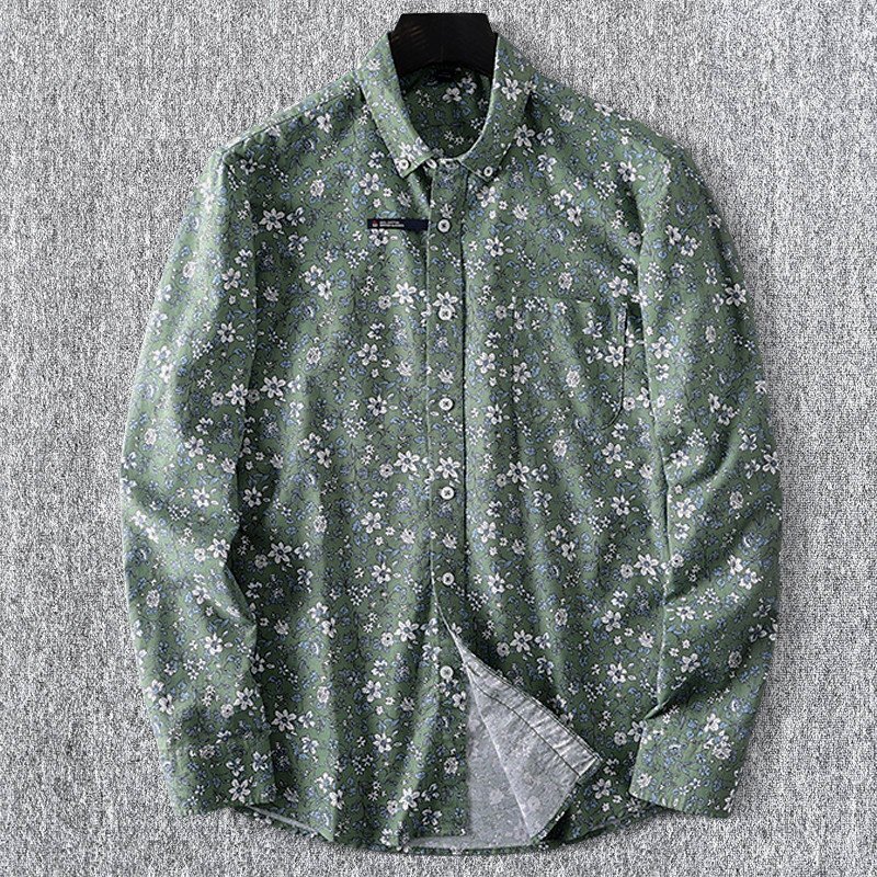 - 人気おすすめ!新品 DCKMANY メンズ長袖シャツ 花柄 純綿 通気性が良くて快適です 日常 春夏 カジュアル/緑色T5035-4XL