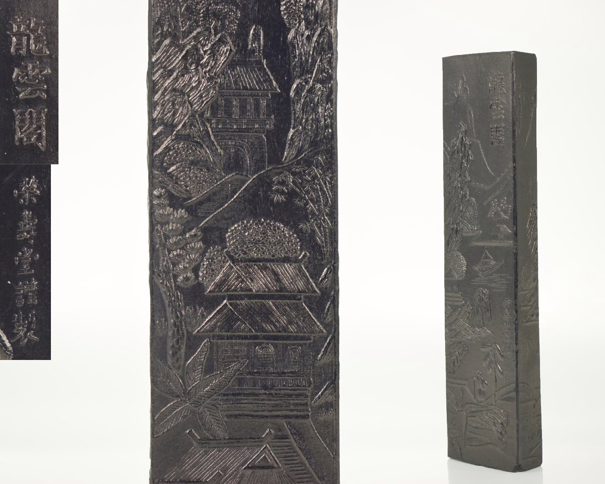 X679 【泉美】榮寿堂謹製 龍雲閣 昭和20年 10丁型 固形墨 和墨 古墨 彫刻 書道具 重量約135.2g拍卖