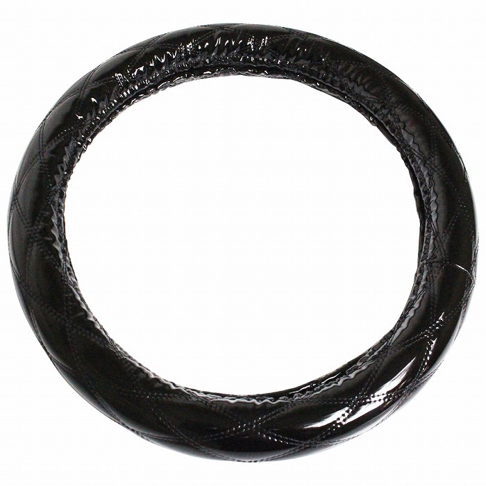- 極太 太巻き エナメル ダブルステッチ ダイヤカット トラック ハンドルカバー 艶ブラック×ブラック Sサイズ トヨタ 2t ダイナ/NEWダイナ