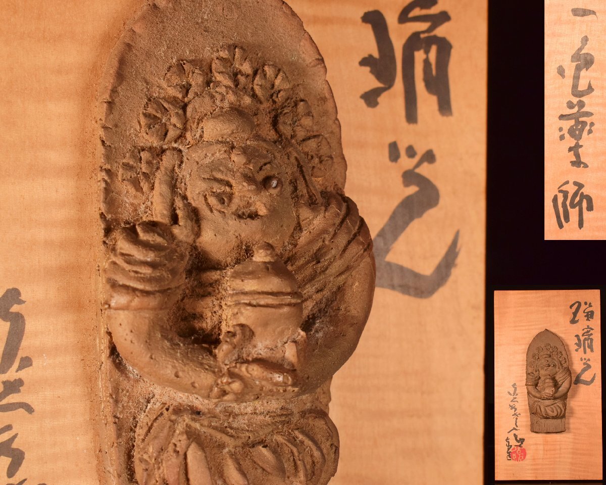 Z455 【泉美】清水公照 一色薬師「瑠璃光」ブロンズ掛仏 仏像 置物 オブジェ