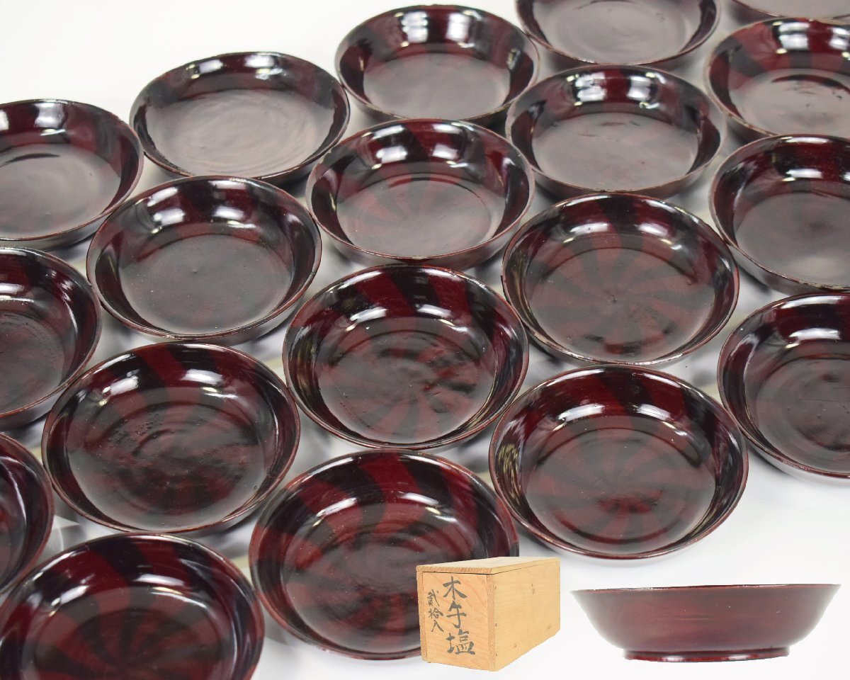 X524 【泉美】漆芸 木製 手塩皿 19客 丸皿 懐石道具 共箱入