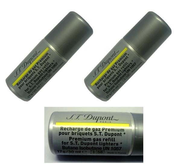 > 複数回注入型 新品正規品 デュポン(S.T.Dupont)ライター専用ガスボンベ(黄色 金色 ゴールド イエロー)2本セット