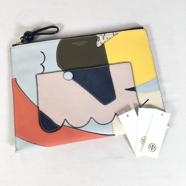 - 【状態良好】TORY BURCH トリーバーチ クラッチバッグ マルチカラー レザー 牛革 鞄 かばん
