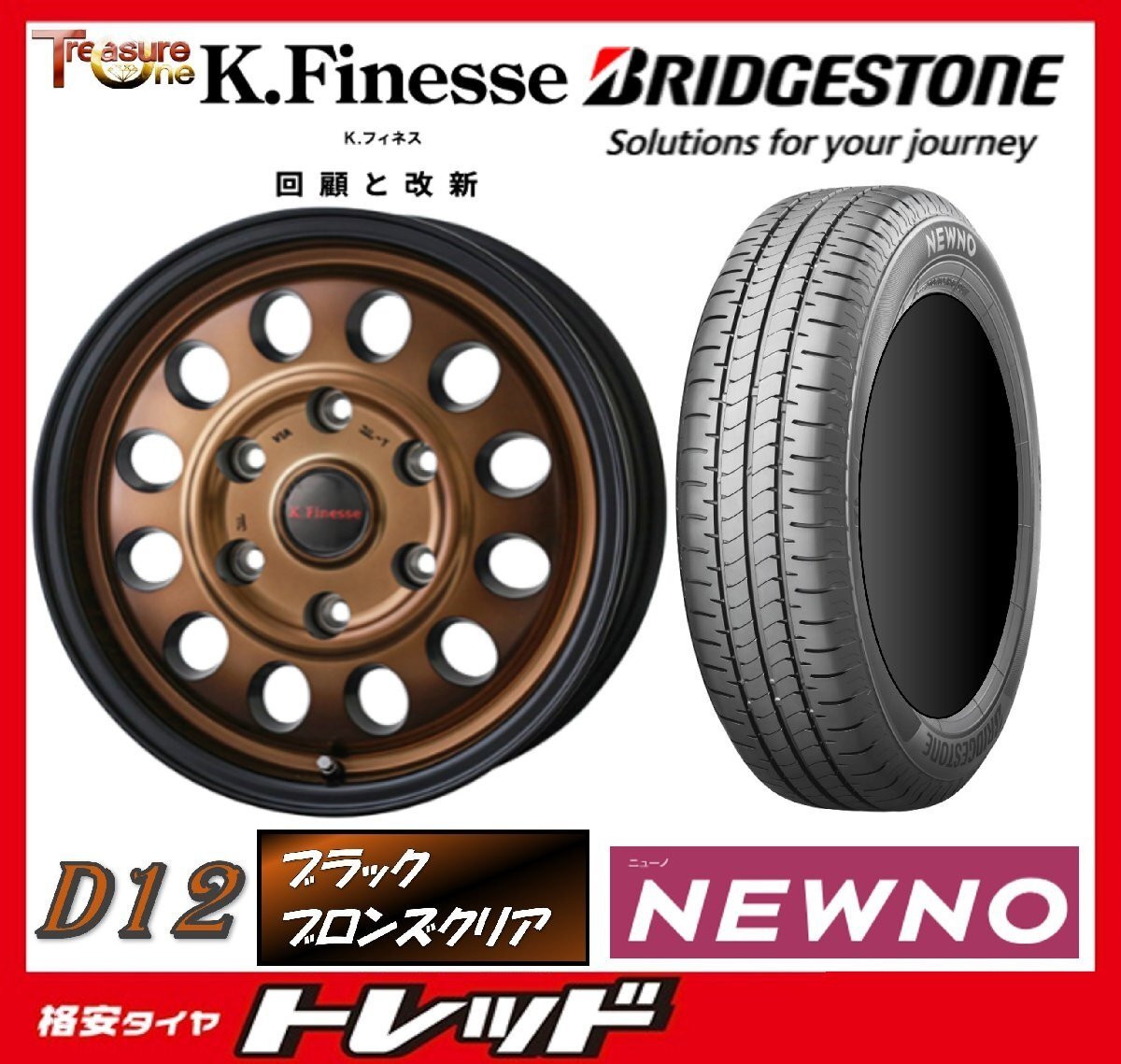 - 数量限定 2023年製)新横浜師岡店 新サマータイヤアルミ4本set K,フィネス D12 15インチ6.0J5穴100+45 ブリヂストン ニューノ 185/65R15