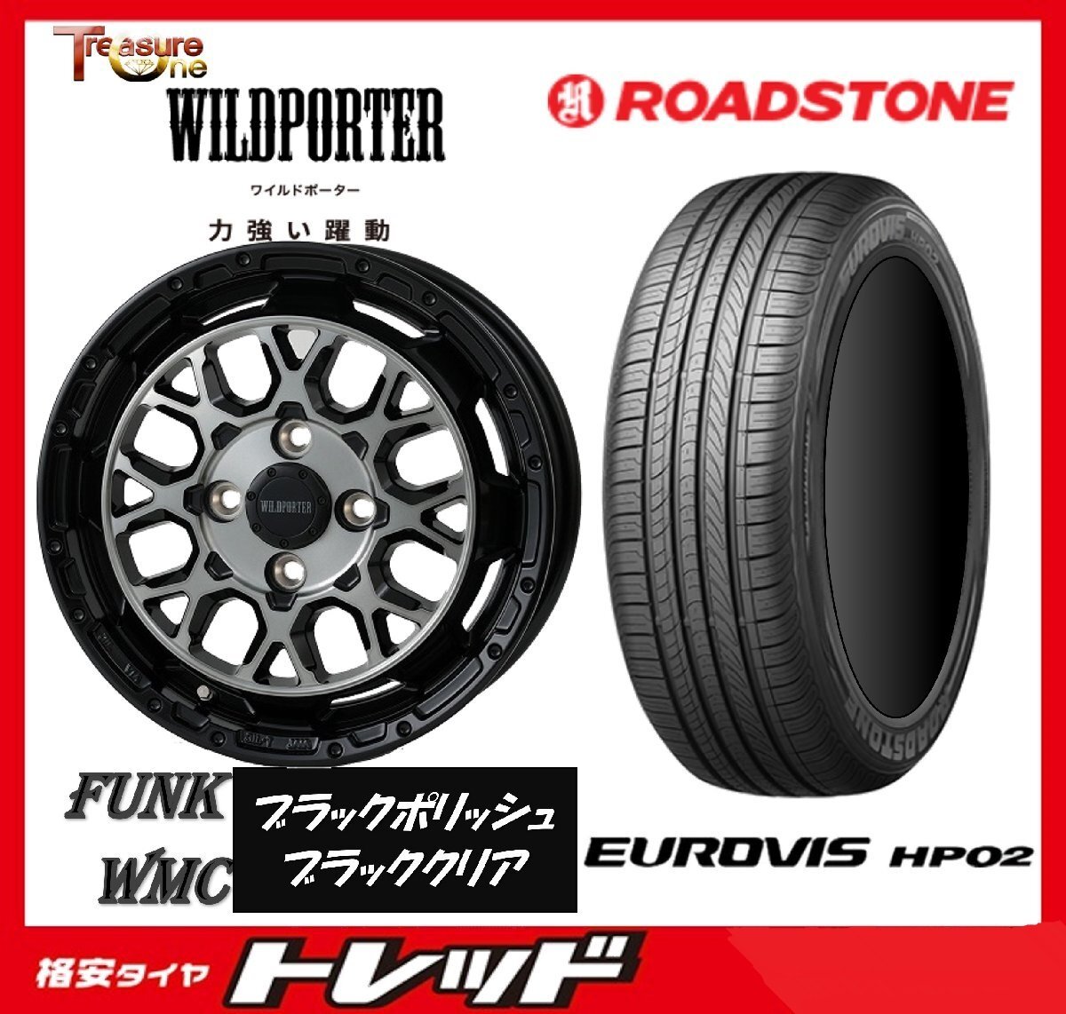 > 数量限定 2023年製)新横浜師岡店 新サマータイヤアルミ4本set FUNK WMC 14インチ4.5J4穴100+45 ロードストーン HP02 165/65R14