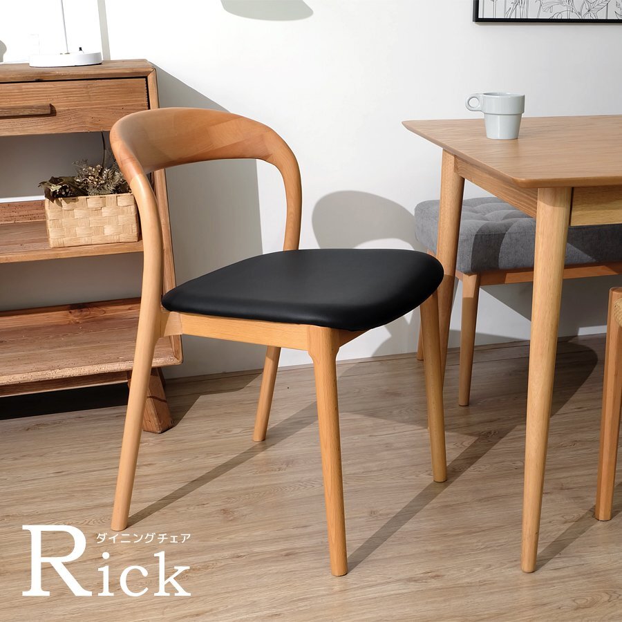 > Rick リック ダイニングチェア 椅子 木製 家具 インテリア 北欧 PUレザー 合皮 黒 モダン ノルディック ウッド ジャパンディ ナチュラル