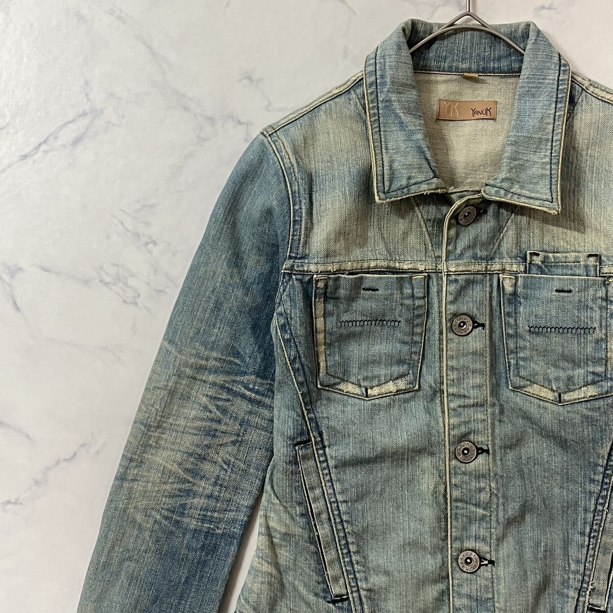 > YANUK ヤヌーク 米国製 色落ち ダメージ ダブル ポケット Gジャン デニム ジャケット ライトブルー P