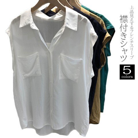 > トップス ブラウス フレンチスリーブ ノースリーブ 袖なし シンプル 襟付き オフィスカジュアル きれいめ 大きめ(2XL) ブラック