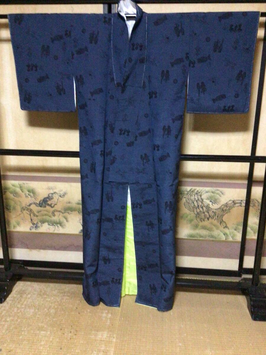 - NO673,はなだの古布::藍地玩具尽くし紬着物(美品)、着用可能