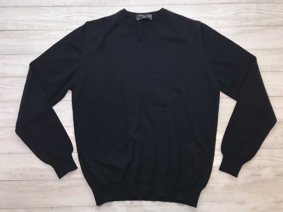 > ITALY製 ロベルト・コリーナ ROBERTO COLLINA シップス SHIPS トラッド ハイゲージ Vネック ニットセーター メンズ ウール100% 48 濃紺