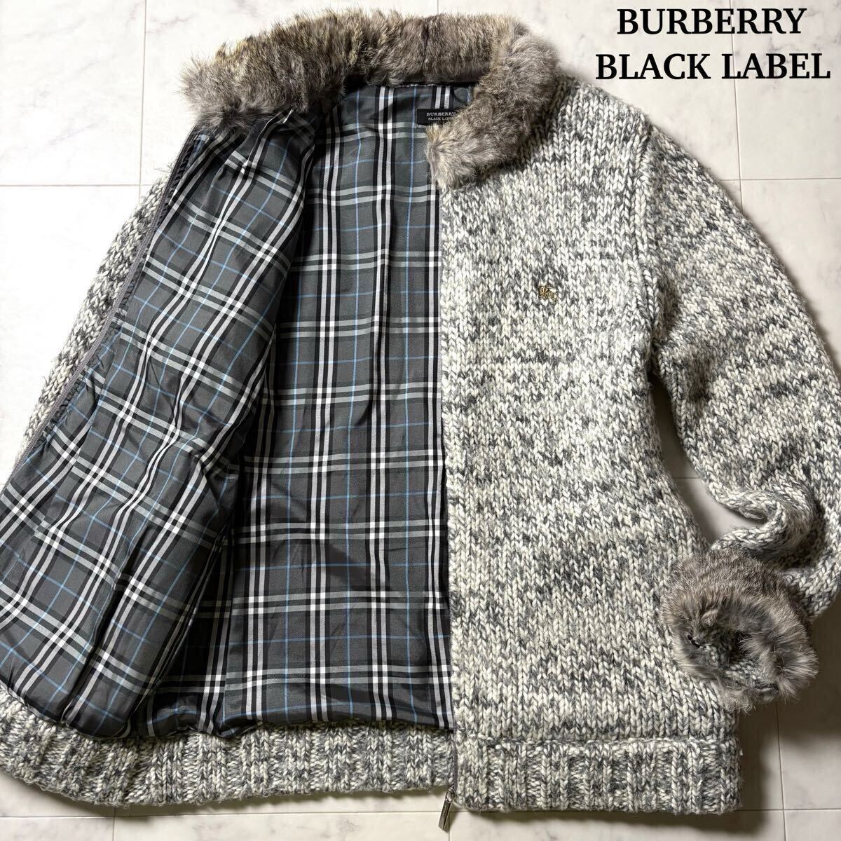 - Lサイズ●BURBERRY BLACK LABEL バーバリーブラックレーベル ニット ジャケット カーディガン ラビットファー ホース刺繍 3 メンズ