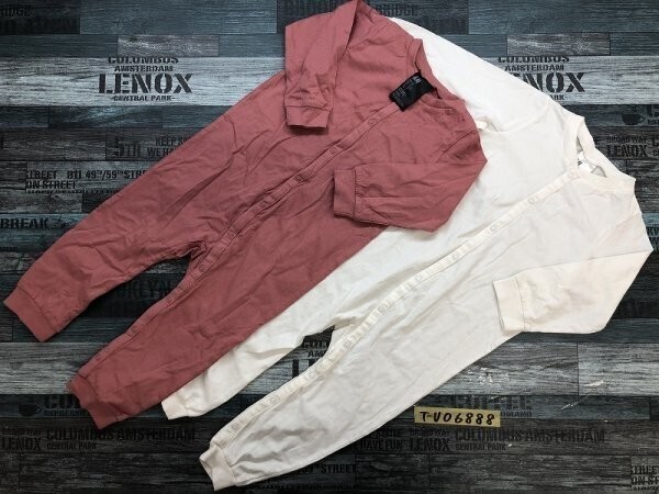 - 美品!H&M エイチアンドエム キッズ ベビー コットン 長袖ロンパース 2点セット まとめ売り 90サイズ くすみピンク・オフホワイト