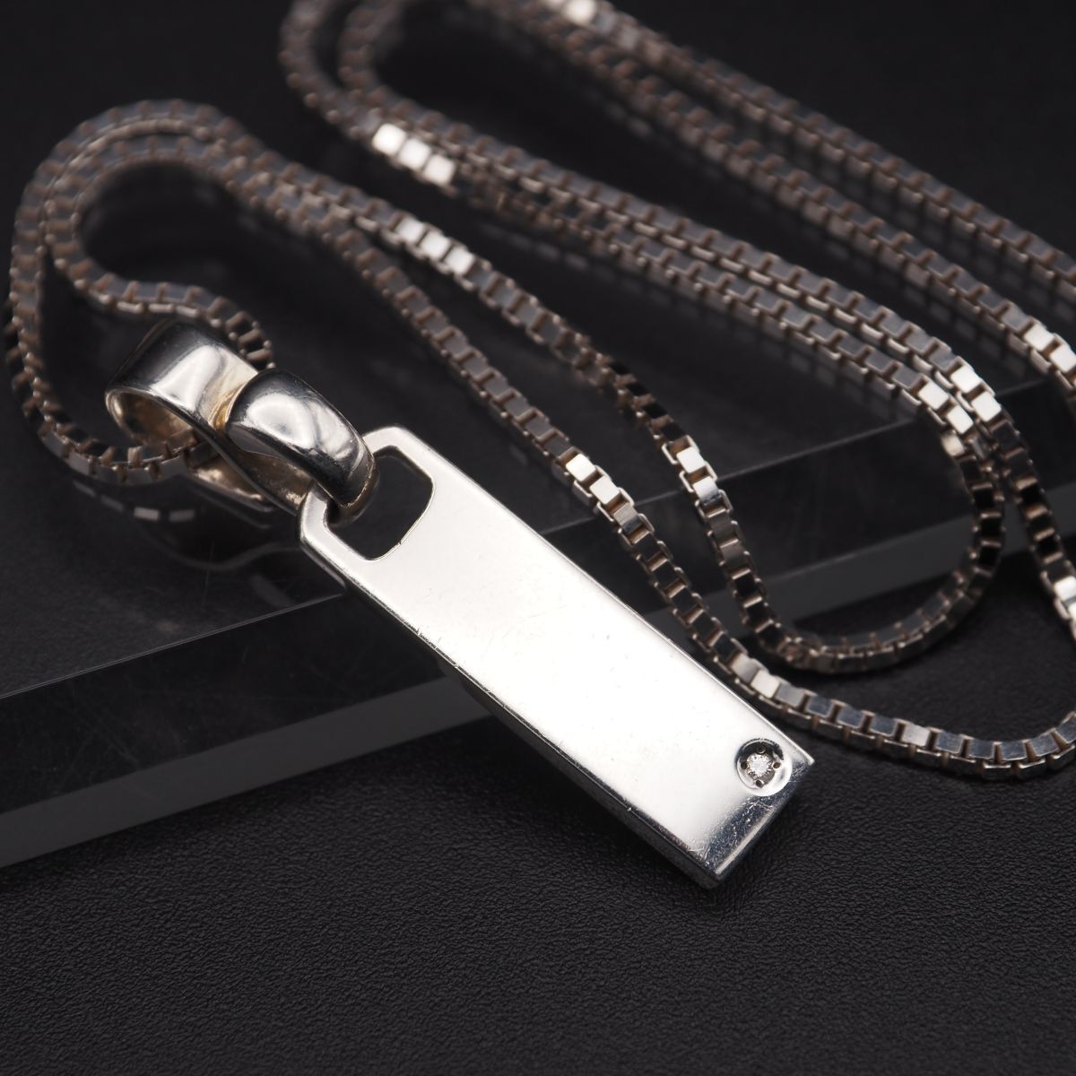 > H699 ダイヤモンド 0.01ct STERLING SILVER925刻印 ペンダント ネックレス バータグ デザイン シルバー 4月誕生石