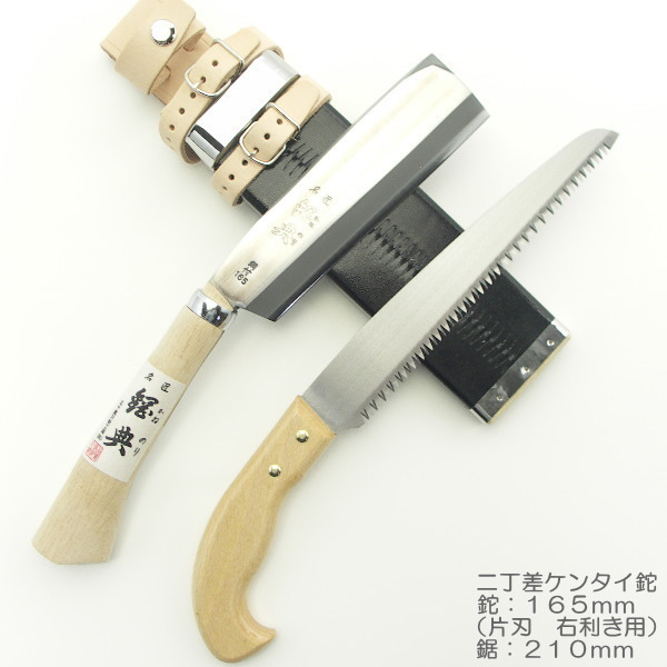 > ケンタイ鉈(二丁差)鉈(片刃)165mm 鋸210mm 鞘バンド付 【経典 鉈 片刃 シノギ】日本国内専用【Use only in japan】
