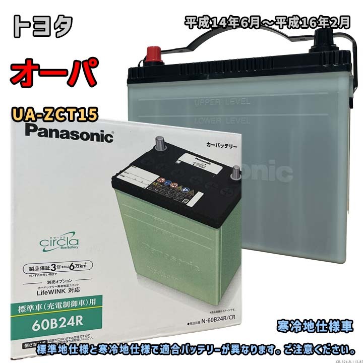 > バッテリー パナソニック N-60B24R/CR トヨタ オーパ UA-ZCT15 平成14年6月~平成16年2月 4WD 対応 B24R 互換 113