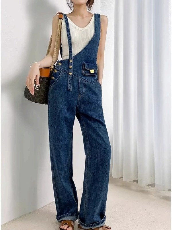 - オールインワン デニムパンツ デニムサロペット ノースリーブ 袖なし シンプル カジュアル XL ブルー