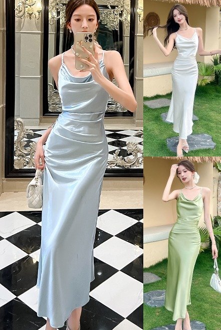 - ロングワンピース キャミワンピース 袖なし ノースリーブ 背中見せ ドレス シンプル レディース L ホワイト
