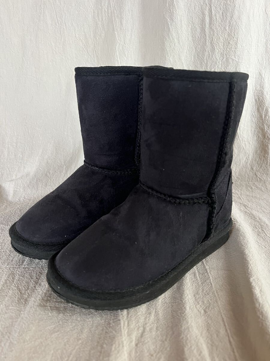 - T11-5-10 vans ボアブーツ 中古 20㎝ キッズ 子供 ショートブーツ 黒 ムートン