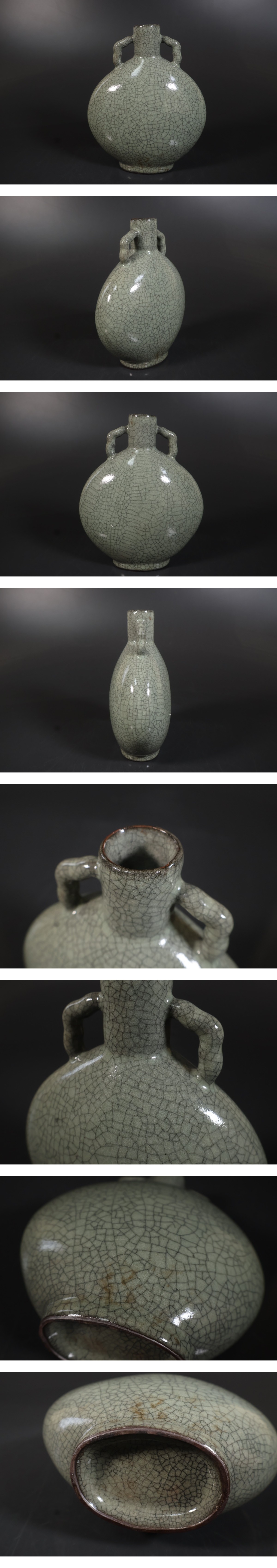 - 【和】(A3679) 時代古作 唐物古玩 青磁耳付花生 扁子壺 郊壇窯