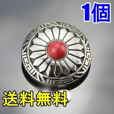 - ターコイズ コンチョ1個 ネジ式 レッドシルバー 30㎜ レザークラフト 装飾ボタン 唐草 フラワー インディアン ウエスタン DIY カスタム01