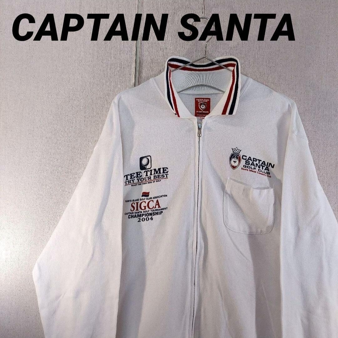 > 古着 キャプテンサンタ トラックトップ 鹿の子ジップブルゾン 00s オールド 鹿の子 リブストライプ ホワイト CAPTAIN SANTA