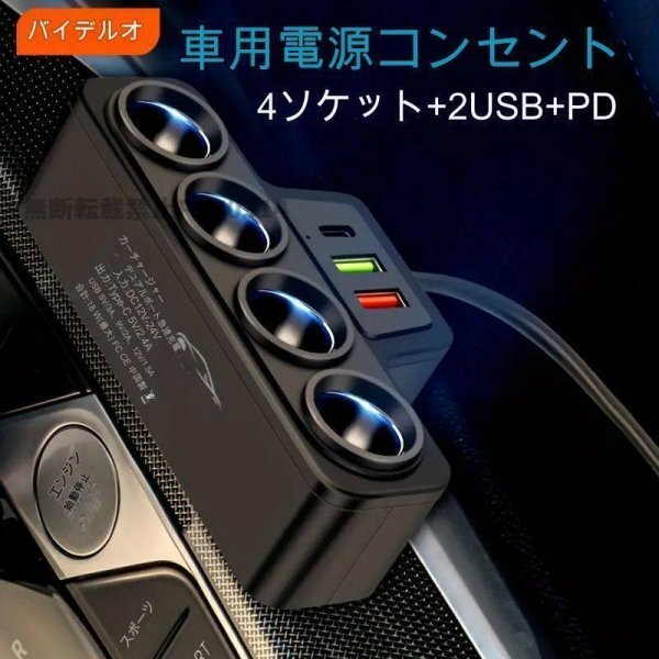 - シガーソケット typeC 4連 USB その他3ポート付き 車載充電器 車 充電器 急速車載充電器 車の充電器 車の充電アダプター 7in1
