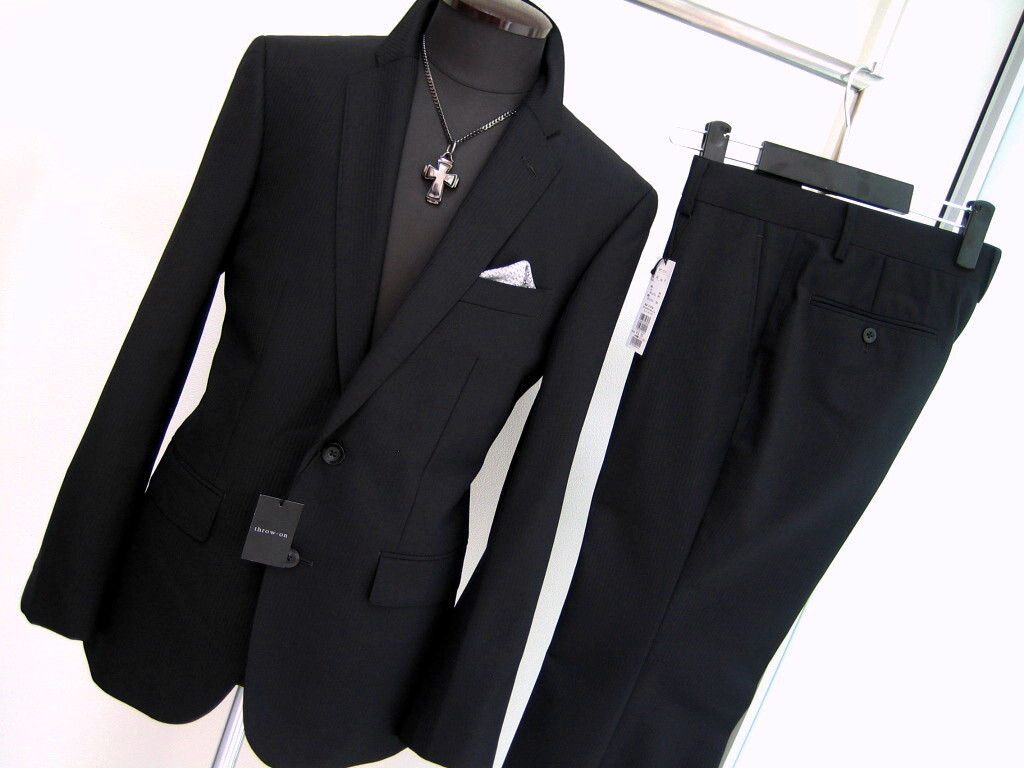 - 5万 新品 スローオン throw-on スーツ L セットアップ ネイビー シャドーストライプ 撥水 142