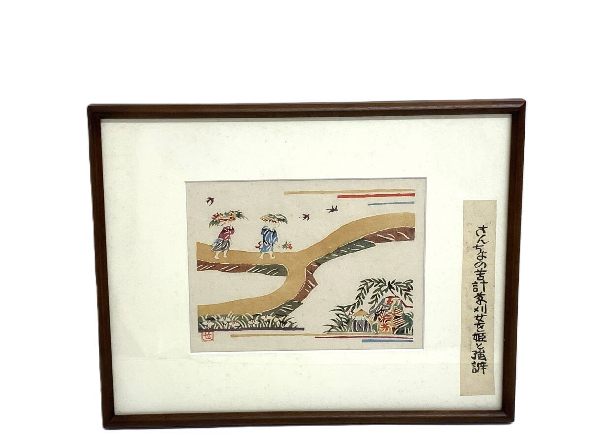 - ◆305 真作保障 芹澤銈介 版画「さんちょの苦汁草刈女を嫗と強辨」額装