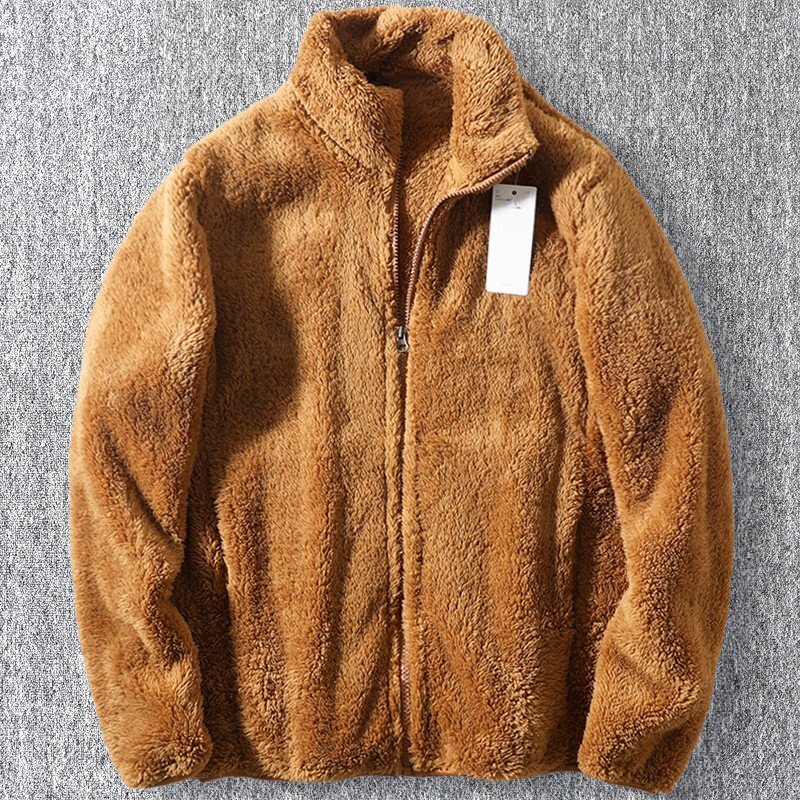 - 新品 国内未販売 フリースジャケット デザイナーズ 秋冬 カジュアル スタンドカラー 暖かさ 裏ボア 厚手 柔らかい メンズ 無地 茶 T4150-XL