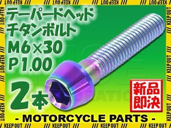 > メール便OK!M6×30 P1.00 チタンボルト 2本セット 6mm 30mm ピッチ1.00 焼き色 テーパーボルト キャップボルト クランクケース バイク