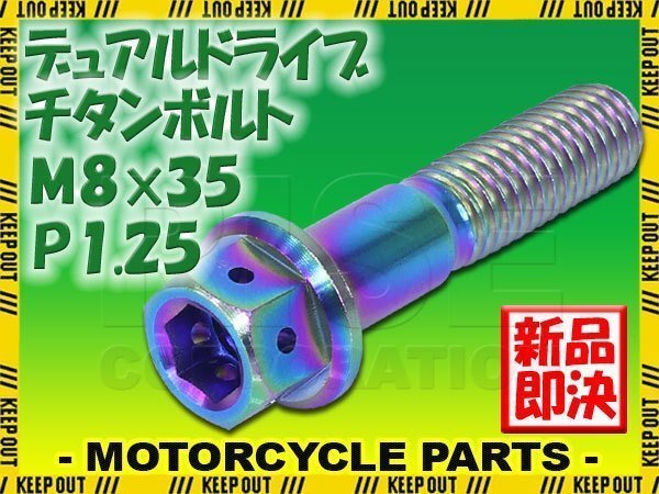 > メール便OK!M8×35 P1.25 チタンボルト 1本 8mm 35mm ピッチ1.25 焼き色 フランジ付 六角ボルト デュアルドライブ ハンドル周り