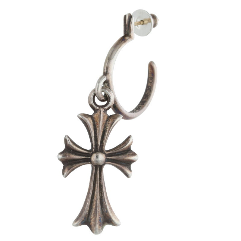 - クロムハーツ ピアス TINY CH CROSS タイニーCHクロスフープ シルバーピアス 中古 FK04