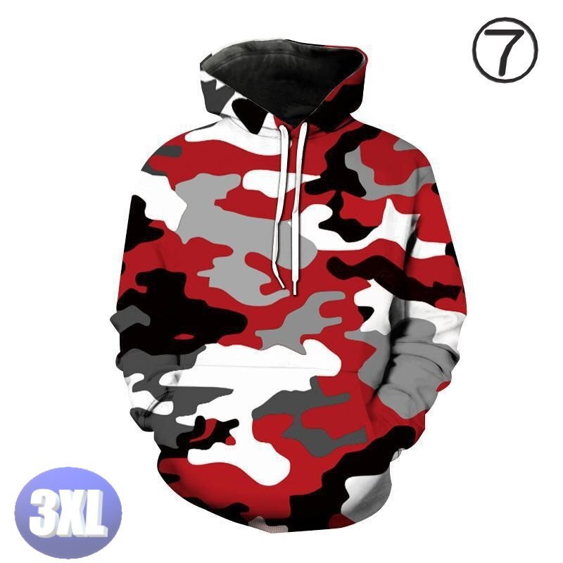 - フード付き 迷彩パーカー カモフラ レッド 3XL トレーナー アウター 防寒 n720