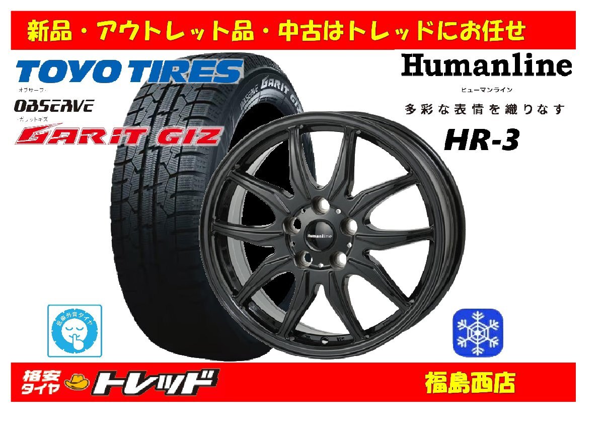> 福島西 新品 スタッドレスタイヤホイール4本セット ヒューマンライン HR-3 15インチ 6.0J 100/5H +43 & トーヨー ガリット GIZ 185/60R15
