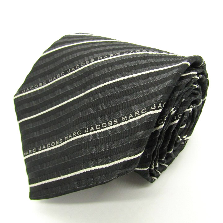 - マークジェイコブス ブランド ネクタイ ロゴ ストライプ柄 シルク イタリア製 PO メンズ ブラック MARC JACOBS