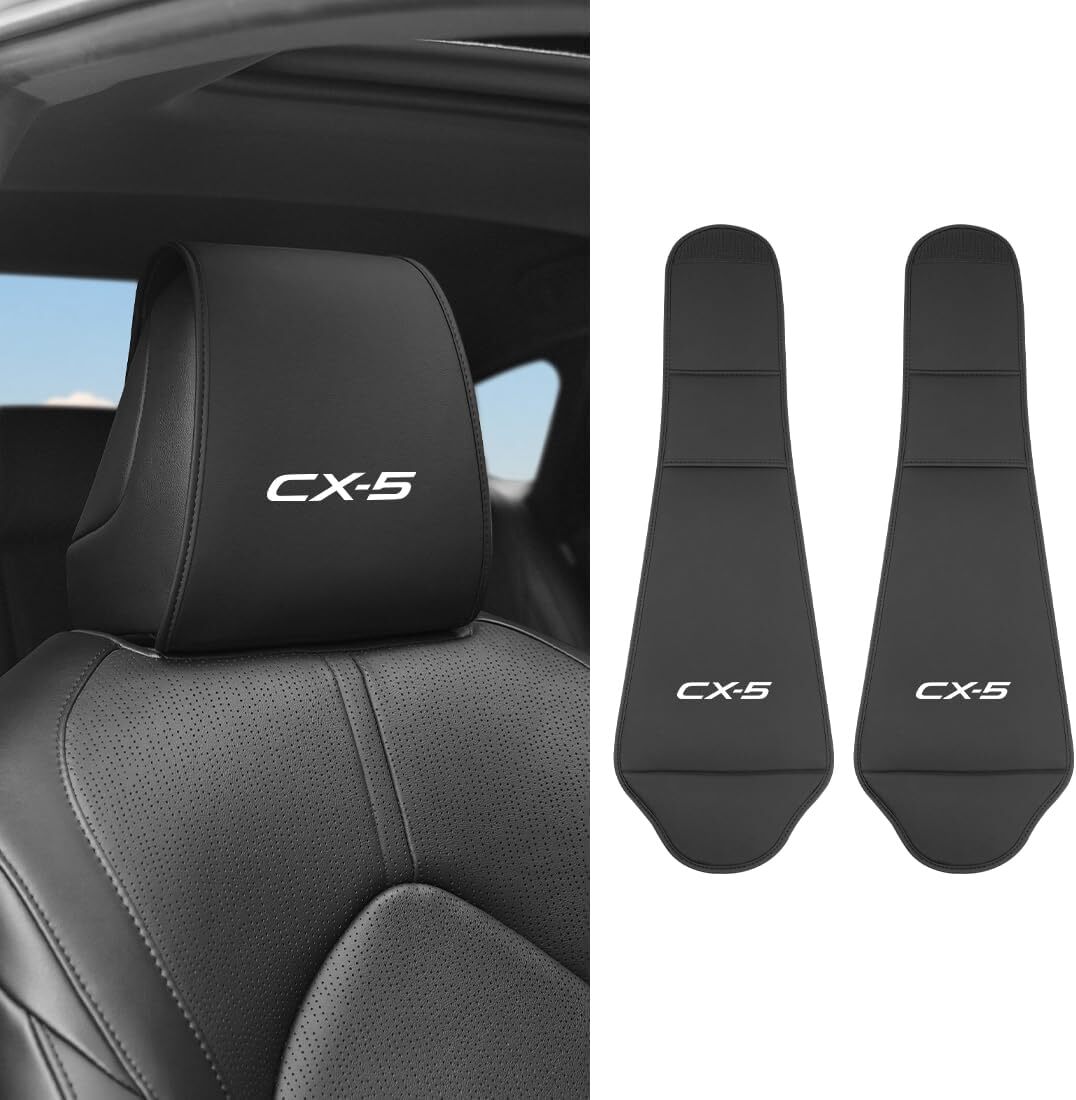 - CX-5 ヘッドレストカバー 収納ポケット付き 取付簡単 シートカバー 運転席+助手席 2枚セット(PUレザー ブラック)