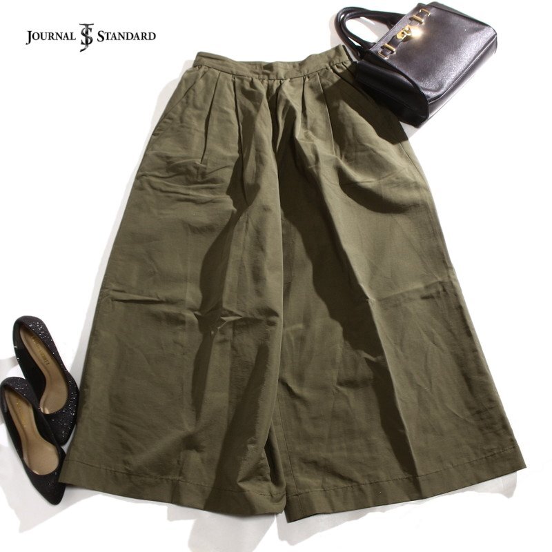 > 美品 JOURNAL STANDARD ジャーナルスタンダード コットン ワイドパンツ 9号 38 カーキ ゆったり ガウチョパンツ スカーチョ フレアパンツ