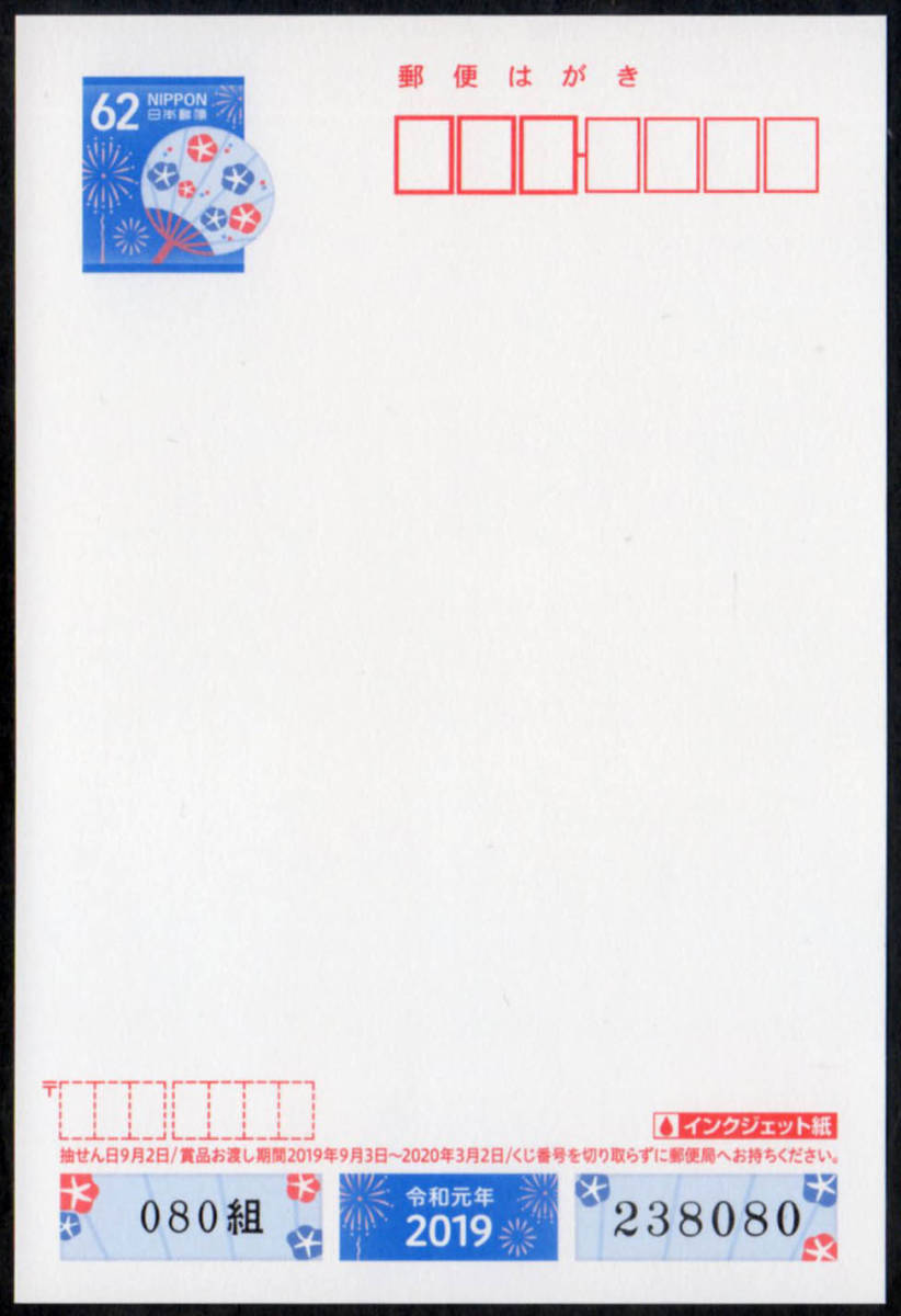 17791A9◆複数出品◆2019年 かもめ~る62円 インクジェット紙★暑中見舞はがき 令和元年