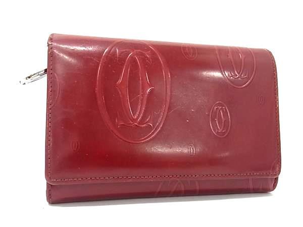 - Cartier カルティエ ハッピーバースデー パテントレザー 二つ折り 財布 ウォレット レディース ボルドー系 DK7132