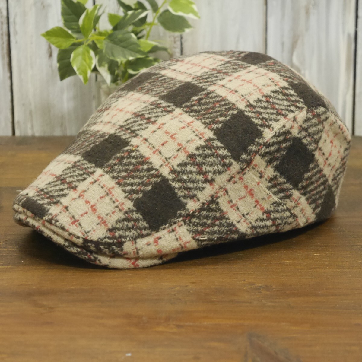 - ウール ハンチング オーバーチェック ベージュ ブラウン シンプル サイズ調整可 送料\450 男女兼用