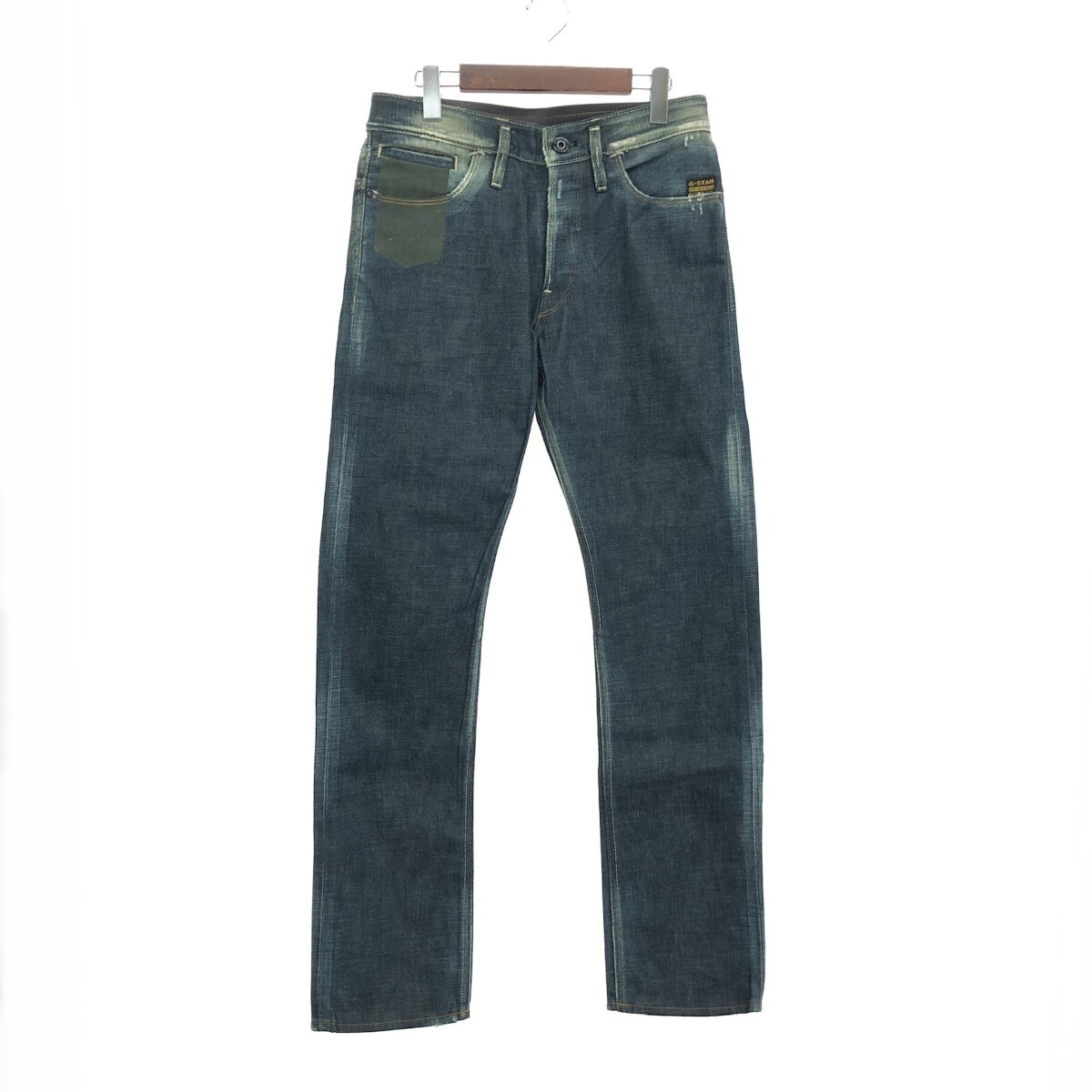 - ◆G-STAR RAW ジースターロウ デニムパンツ サイズ:28 レザー使用/テーパード/ヴィンテージ加工 ネイビー メンズ