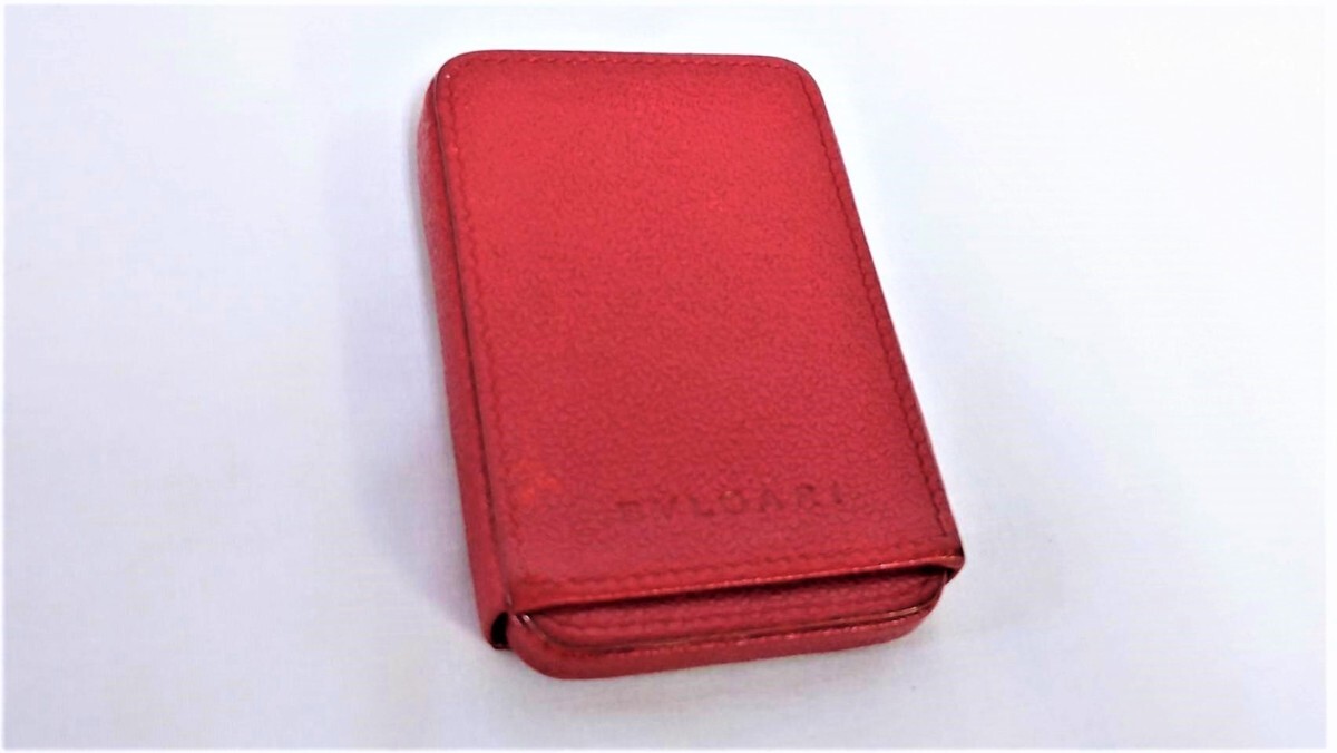 ▽BVLGARI ブルガリ カードケース スライド式 名刺入れ レッド レザー レディース 中古▽004520拍卖