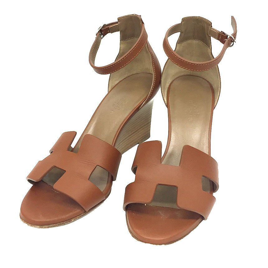 - 送料無料 セール HERMES エルメス サンダル Legend レジェンド Hサンダル サイズ37 1/2 24.5cm ブラウン ウェッジソール aq8553