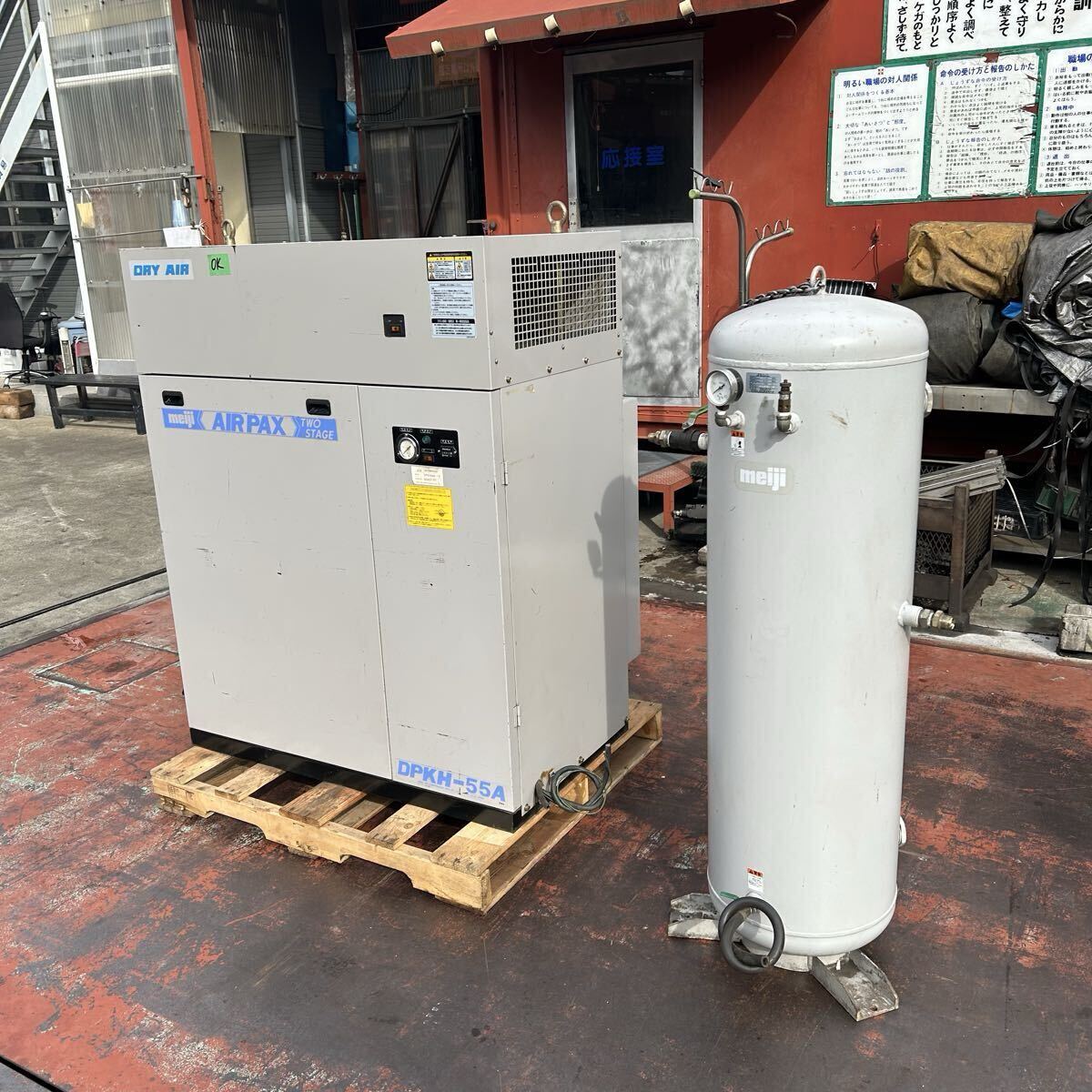- T2448 meiji 明治 コンプレッサー AIRPAX DPKH-55A-75 5.5kW 7.5馬力・タンク 159L (2004年製) セット【動作確認済】