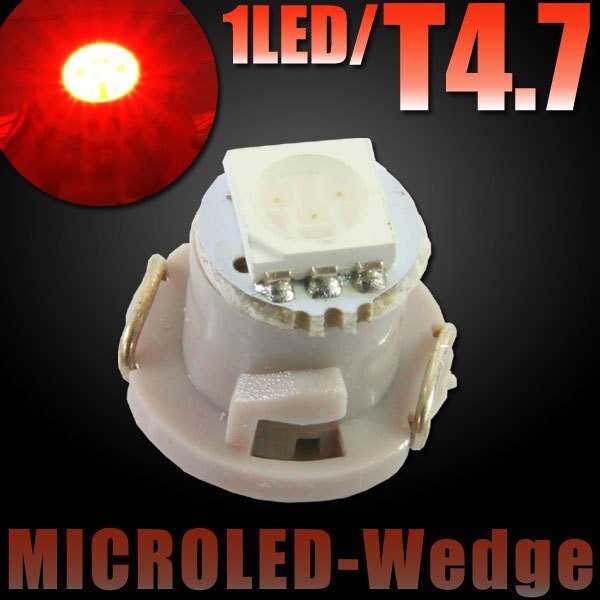 - T4.7 SMD LED バルブ エアコンパネル球 メーター球 レッド 1個 メーターパネル インパネ シフトポジ マップランプ 時計 トリップ
