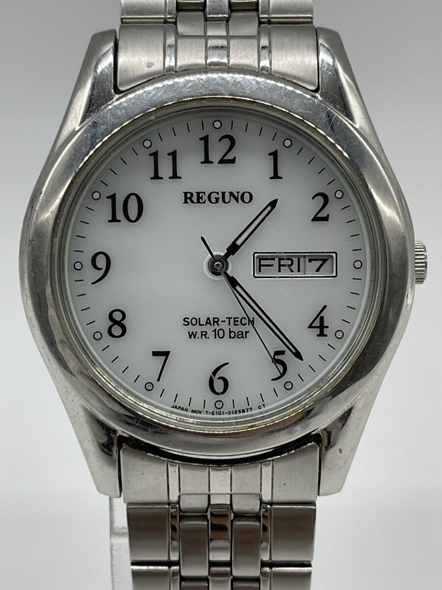 - 1円~ 稼働品 CITIZEN シチズン REGUNO レグノ ソーラーテック メンズ腕時計 デイデイト ステンレス 10気圧防水 ホワイト文字盤