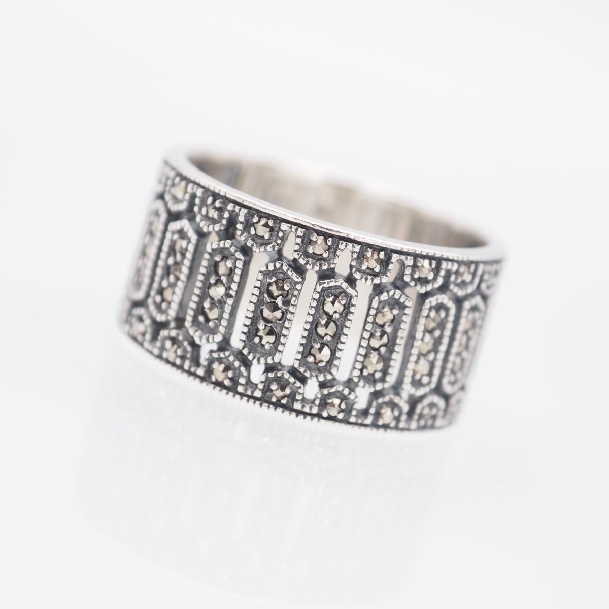 > H748マーカサイト マルカジット 925刻印 リング 透かし彫り デザイン シルバー 指輪 ヴィンテージ 18-19号